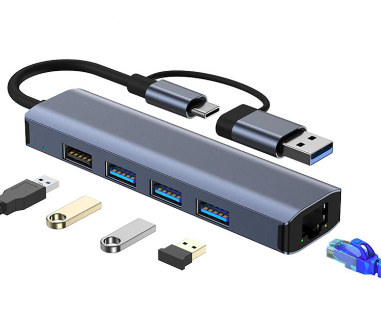 Адаптер-хаб для багатофункціональної док-станції BYL-2208 5 в 2 USB + USB-C / Type-C на USB